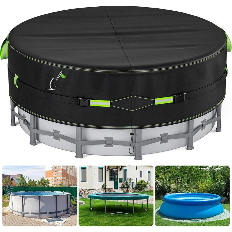 16 Ft Round Winter Pool Cover with Reflective Strips, Swimming Pool Cover for Above Ground Pools, Solar Cover Including Rope Tie and Luminous Ground Nails, PU Tarp Snug Fit for UV Protected:_Black(Round)_15' (Round)-Round Pool Cover