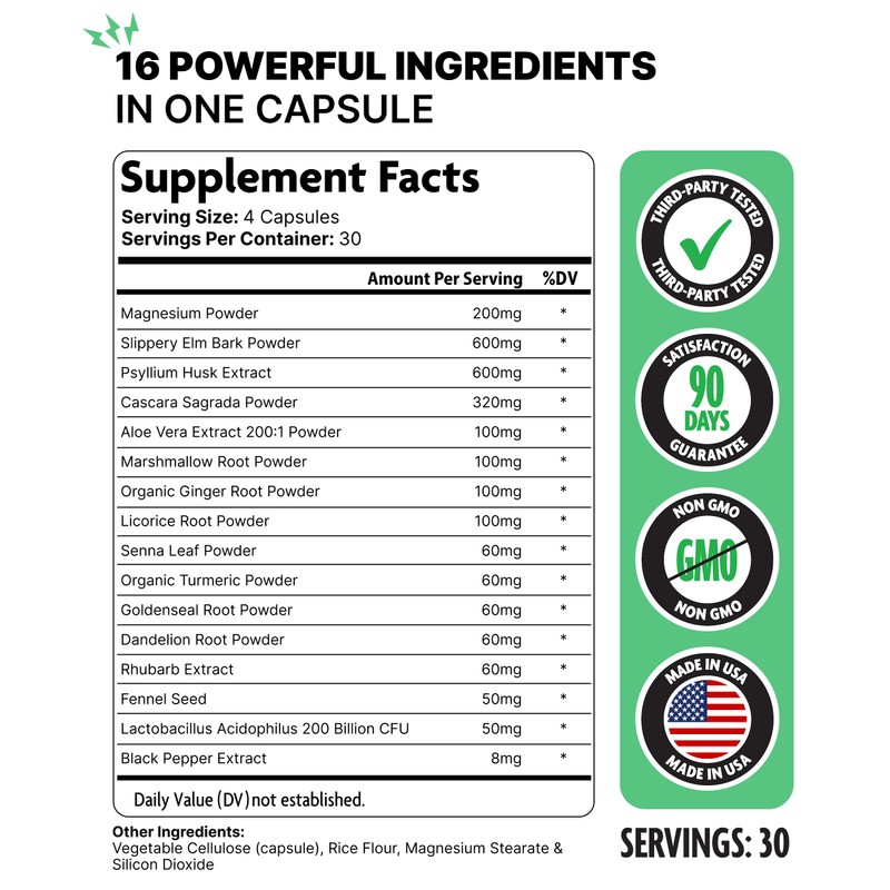 - COMPLETE GUT RELIEF SYSTEM: Our 16-ingredient formula tackles multiple digestive concerns simultaneously. Slippery Elm for Women and Men includes therapeutic doses of Slippery Elm (600mg), Psyllium (600mg), and Magnesium (200mg), plus 13 additional digestive support ingredients for total gut comfort.