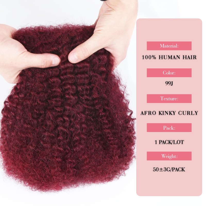 16 Inch Afro Kinkys Curly Human Hair Bulk for Permanent Micro Locs/Twists/Braids/Repair Locs Afro Kinky Curly Bulk Human Hair 99J Burgundy Red Color 50g/pack