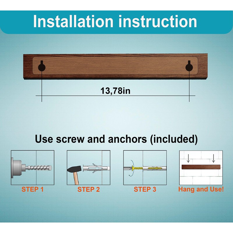 - ★ Easy to install: This magnetic knife rack comes with mounting hardware and also compatible with any kind of mounting tape!