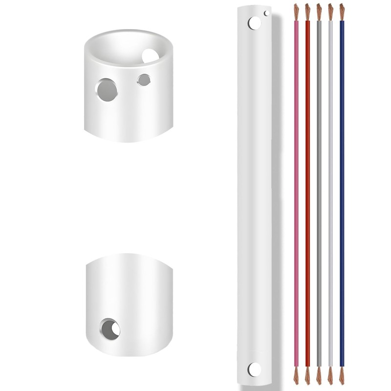 16 Inch Ceiling Fan Extension Rod, 1" Outer Diameter White Ceiling Fan Downrod (No Threads) with 5 x 18-AWG Wires,Fan Boom Fit for Wide Range of Fans