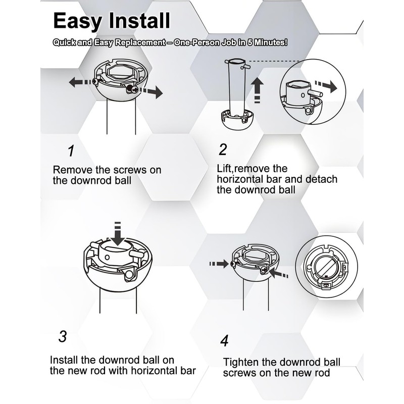 - 【No-Fuss Installation】Step 1: After making sure the power is off, remove the original Ceiling fan boom and insert the fan hanging bell into the new boom. Step 2: Run the wires through the boom and connect one end to the host end wires. Step 3: Align the holes, insert the retaining bolts and R-pins, and tighten the screws on the host end.