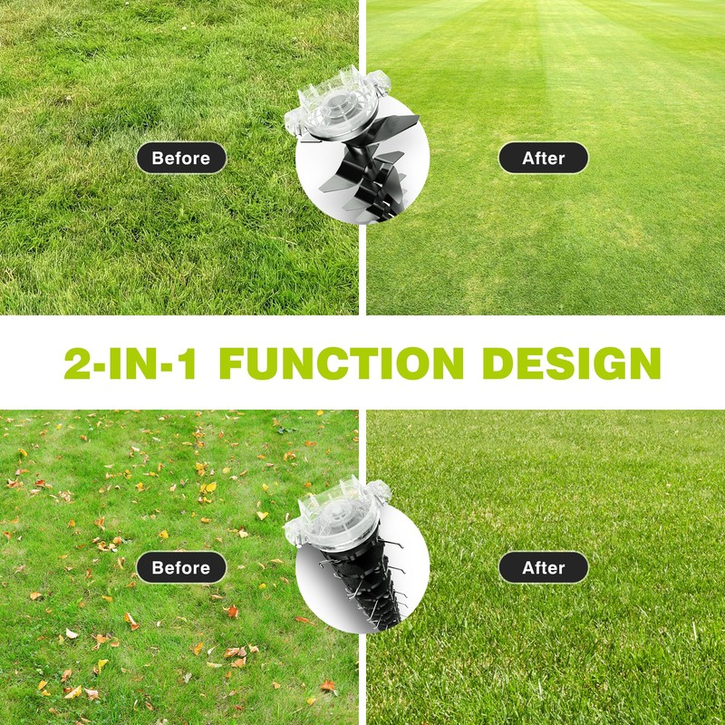 - 2-in-1 Versatility: Equipped with both Dethatcher and Scarifier blades, the Yeryork lawn scarifier meets your dual needs effortlessly. It effectively removes thatch and moss from your lawn's surface while improving soil aeration and drainage, promoting healthier grass growth.