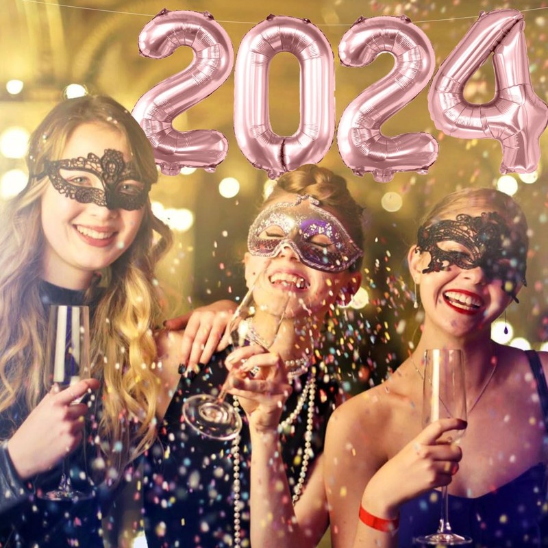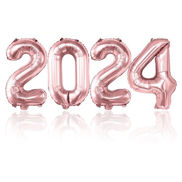 16 Inch New Years Eve Decorations 2024 Balloons - Pink Foil Number Balloons Happy New Year Decorations 2024 for nye Decorations 2024 Christmas