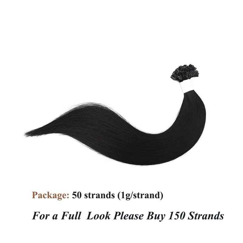 16 inch Pre Bonded Human Hair Extensions 1g 50 Strands 100% Remy Keratin Nail U Tip Real Hair Extensions Straight Natural (#1 Jet Black,50g)