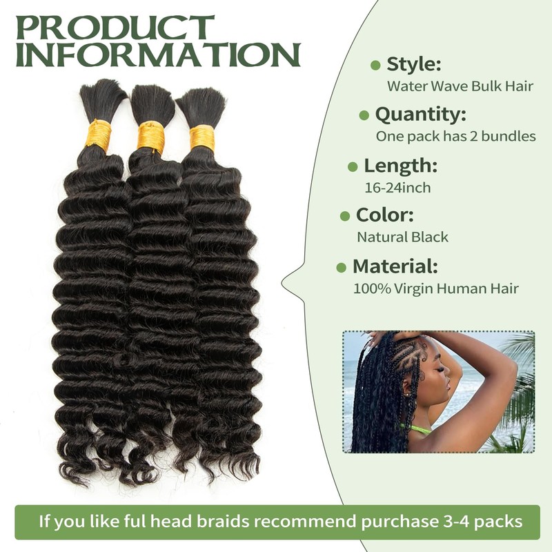 - Virgin Human Hair for Braiding : Crafted from premium raw human hair, our water wave braiding hair is soft, odorless, and lightweight for ultimate comfort. Unlike synthetic hair, it’s breathable and ideal for summer wear. Enjoy versatile styling without heaviness while maintaining a natural look.