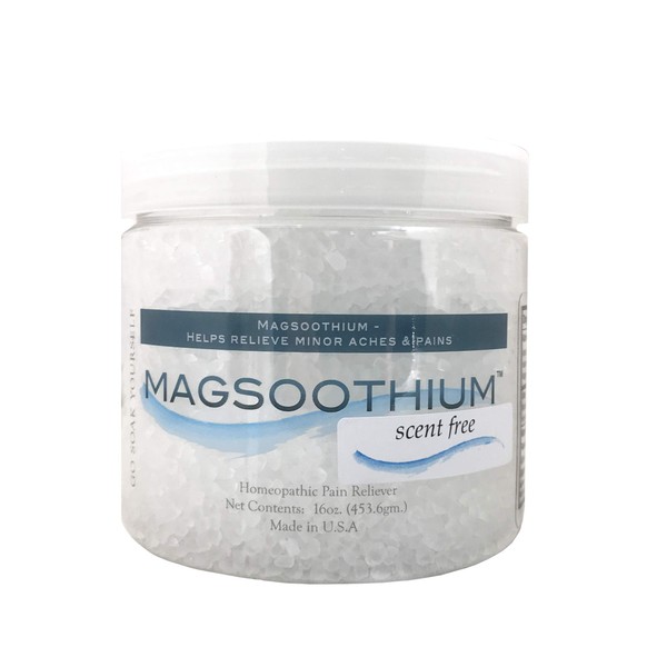 - 16oz Magsoothium Peppermint Soothing Crystals *Magnesium and Arnica infused Homeopathic Pain Reliever with a boost of Peppermint Essential Oil *Temporary relief from aches, pains, and inflammation *Dissolve half of container in warm water and soak 30-60 minutes, relaxation and relief is yours *All natural pigment dye, made in U.S.A, used by Professional Athletes
