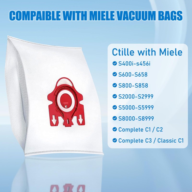 - 【Widely Compatible】:Air Clean 3D dust bag designed specifically for Miele vacuum cleaners,Compatible with Miele series Compact C1, Compact C2, Complete C1, Complete C2, Complete C3, S241-S256i, S290-S299, S2000-S2999, S300i S399, S400i S456i, S4000-S4999, S500-S578, S5000-S5999, S600-S6999, S700-S758, S800-S858, S8000-S8999 series canned GN vacuum cleaner bags.