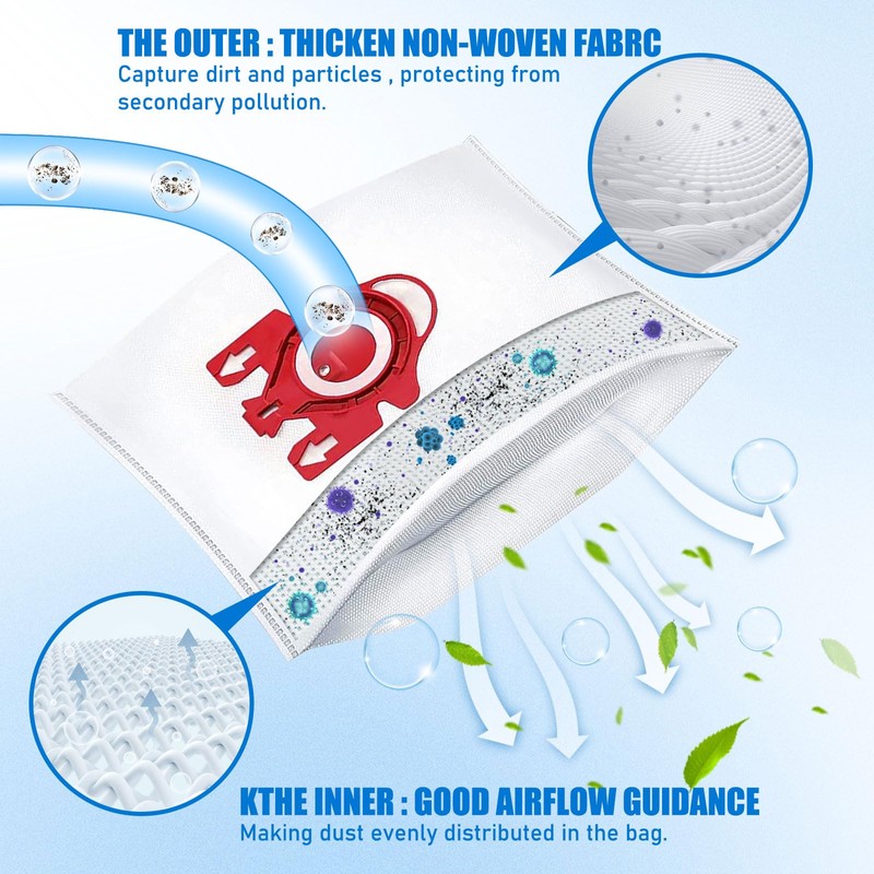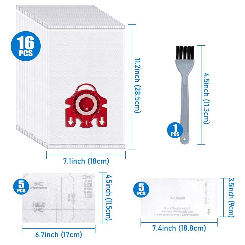- 【Package Includes】: Replacement of miele vacuum bag set, including 10 miele classic c1 vacuum bags, 5 motor protection filters, 5 air cleaning filters, and 1 cleaning brush. You can cut the size of the filter according to the product model. It is recommended to replace the fjm miele vacuum bags once a month to effectively protect the motor and extend its service life.