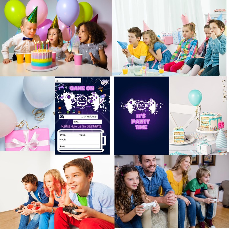 16 Pack Birthday Party Game Invitation Cards with Envelopes, Perfect for Kids, Adults, and All Celebrations, 4.72 x 6.69 Inches (purple gaming pattern)