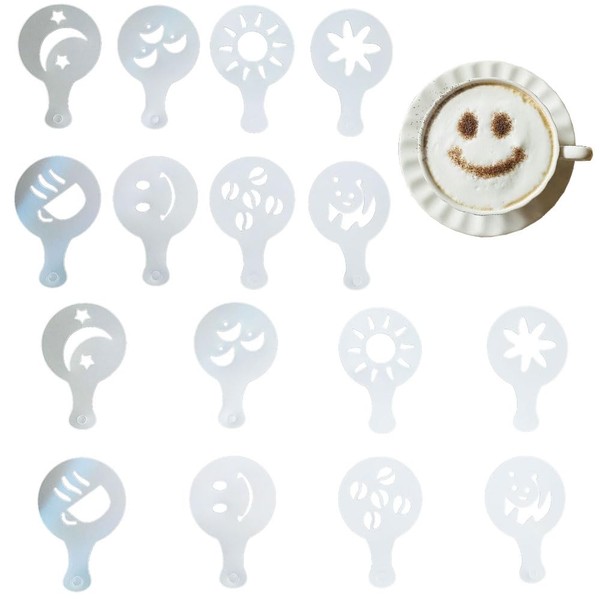 16-Pack Coffee Stencils Plastics Molds for Cookies Baking Dessert Cappuccino - Reusable DIY Craft Molds with Coffee Cup (A)
