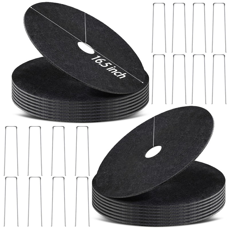 - PERFECT PACKAGE AND SIZE: We provide 16 pcs weed barrier mat of 16.5 inches, which can protect your trees and plants very well, 10 staples stakes for securing tree cover rings