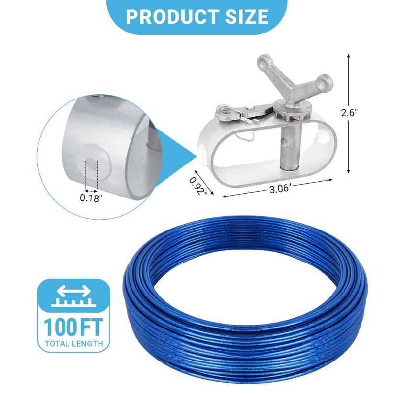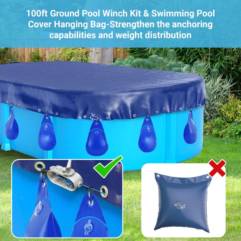 - round swimming pool reinforcement kit: 100ft pool cover cable and winch kit, designed specifically for ground swimming pools, Strengthen the anchoring capabilities and weight distribution for pool water bags, ensuring the stability of the pool cover