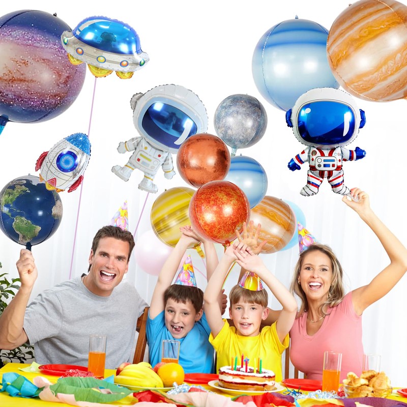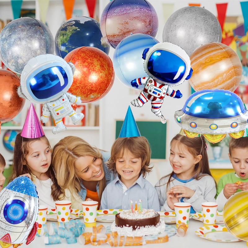 - Attractive Large Space Balloons Set: A space themed balloon party for kids fosters imagination, it's a fun way to celebrate special occasions, while also providing a unique learning experience about the universe. A perfect blend of entertainment and education! The galaxy themed party supplies will offer you an unforgettable experience with space theme party supplies.