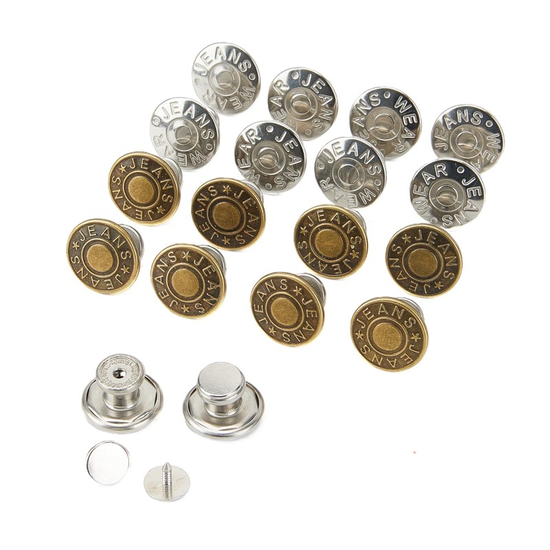 16 pcs Jeans Button Replacement, No Sewing/Tools Needed. Install by Hand-Pressing to Adjust Waist Size. Replace Old/Missing Buttons.
