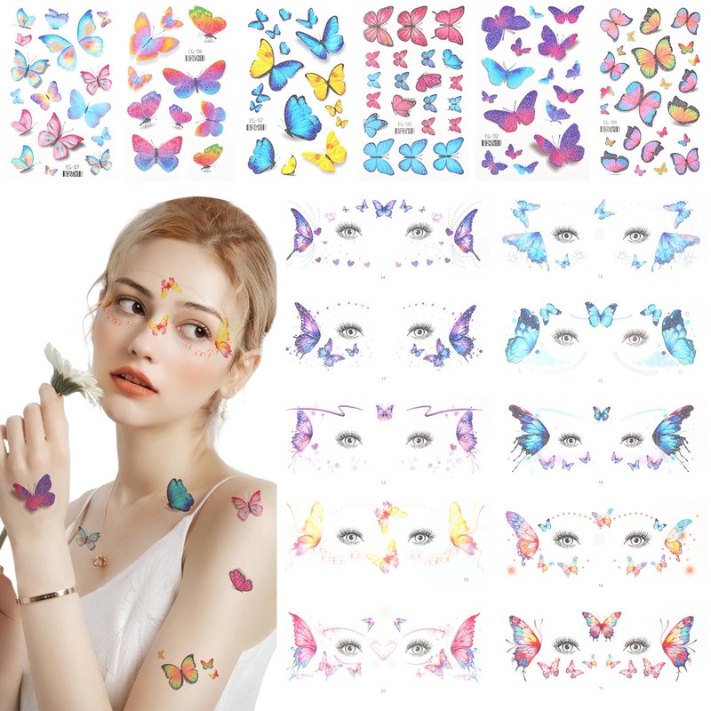 - SCOPE OF DELIVERY: 16 sheets of temporary tattoos in many different butterfly patterns. Perfect accessories for butterfly costumes, carnival and fancy dress parties