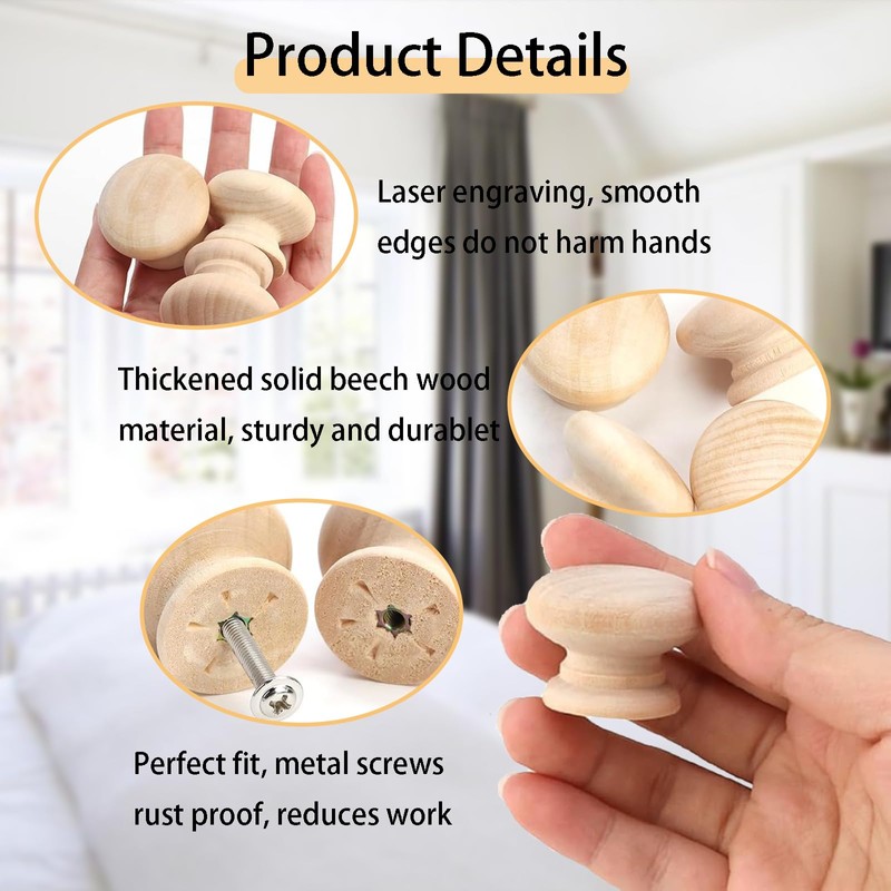 - 【Smooth Grip】: Wooden drawer knobs use advanced polishing technology, the surface is smooth and flawless, and the hand feels comfortable. This meticulous treatment of drawer knobs not only prevents scratches on your hands but also enhances the tactile experience of wooden door knobs, making you more pleasurable during use.