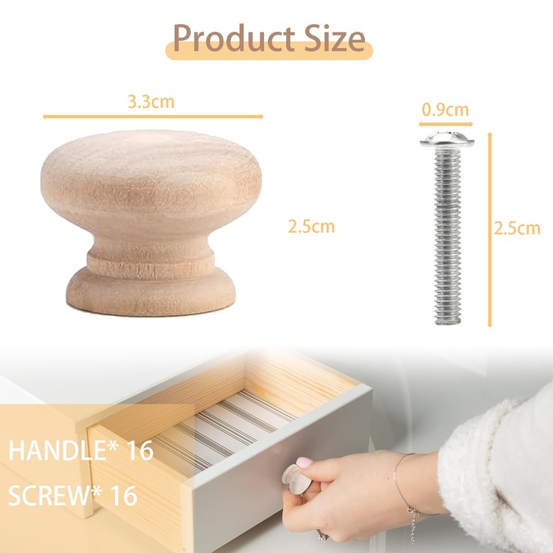- 【Ideal dimensions】: Measuring 33mm in diameter and equipped with 24mm screws, these door knobs are designed to fit a wide range of furniture pieces. Enhance your home decor effortlessly. Easy to Match: In terms of style, wooden knobs for drawers show a simple and elegant design concept, elegant colors and natural wood grains. Whether it is modern minimalist style or retro pastoral style, wooden drawer handles can blend in to give your home a new look. Vibrant, wooden door knobs can add an elegant touch to your furniture.
