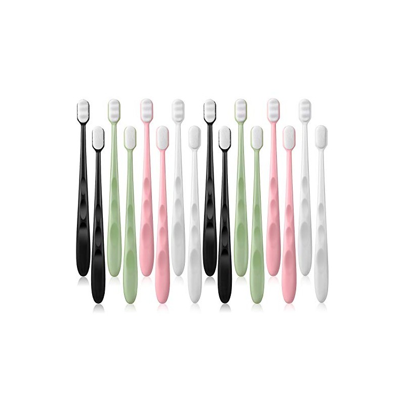 - Practical toothbrushes set: the package includes 16 pieces extra soft toothbrushes in 4 different fresh colors, including black, white, pink and green, the toothbrushes come with 2 styles brush heads of flat bristle and wave bristle, the different heads will meet your and your families' multiple needs