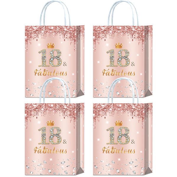 16 Pieces Rose Gold 18 & Fabulous 18th Birthday Party Favors Bags,Happy 18th Birthday Girl Gift Snacks Treat Candy Favors Bags with Handles for Girls 18th Birthday Party Decorations