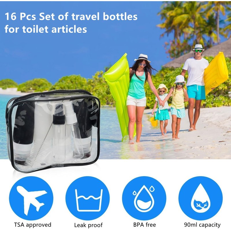 16 Pieces Travel Bottles for Toiletries,90ml Tsa Approved Travel Containers,BPA Free Leak Proof Travel Containers for Toiletries,Refillable Travel Accessories for Shampoo Conditioner (Black and white)