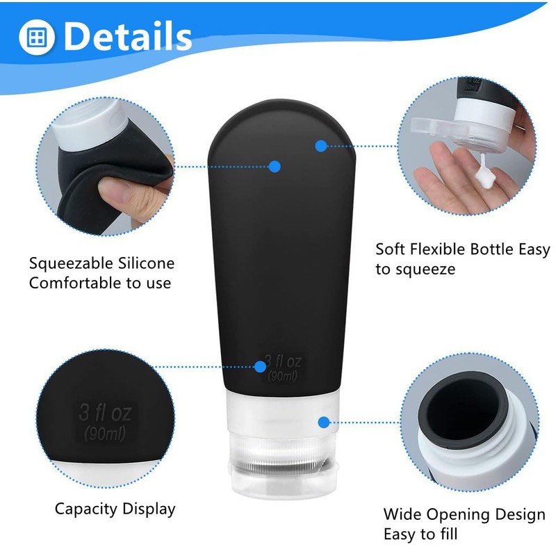 - 【Safe And Durable】Food grade BPA-free silicone, designed with safety in mind first, then comfort. The silicone bottle is reusable, soft and comfortable and does not produce any odor. It guarantees you a comfortable and enjoyable trip.