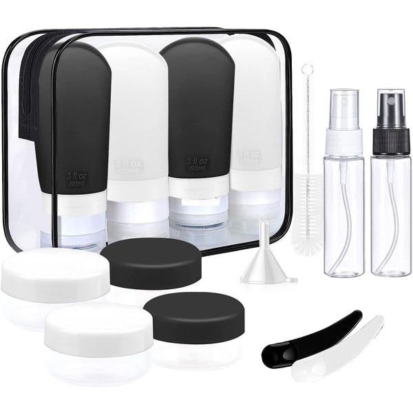 16 Pieces Travel Bottles for Toiletries,90ml Tsa Approved Travel Containers,BPA Free Leak Proof Travel Containers for Toiletries,Refillable Travel Accessories for Shampoo Conditioner (Black and white)