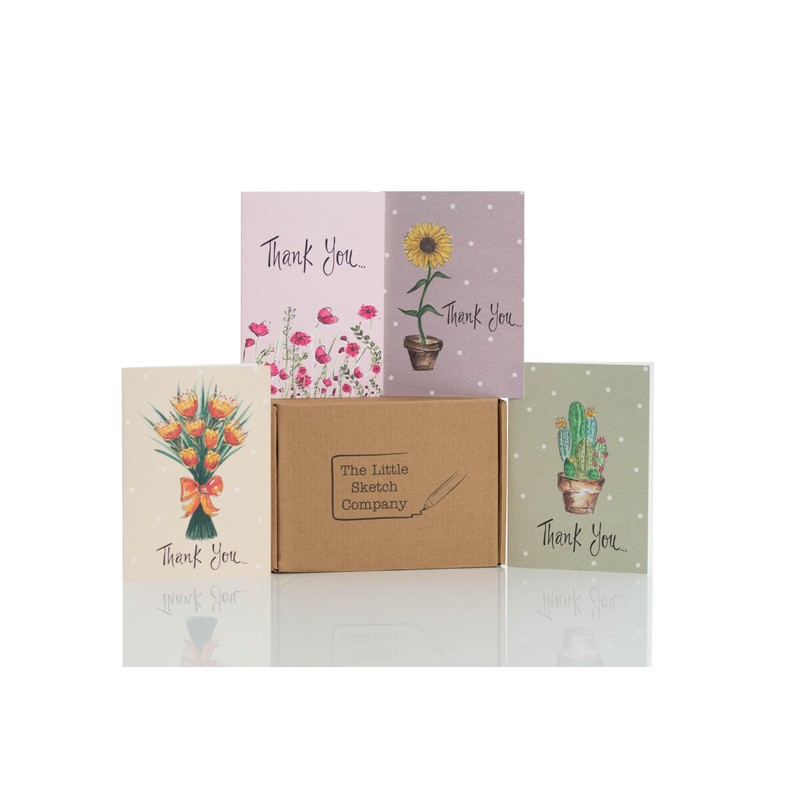 16 Thank You Cards Quality Recycled Card Multipack 4 Flower Themed Designs Folded to A6 Self Seal White Envelopes Included. Hand Illustrated Watercolour. (pack of 16)