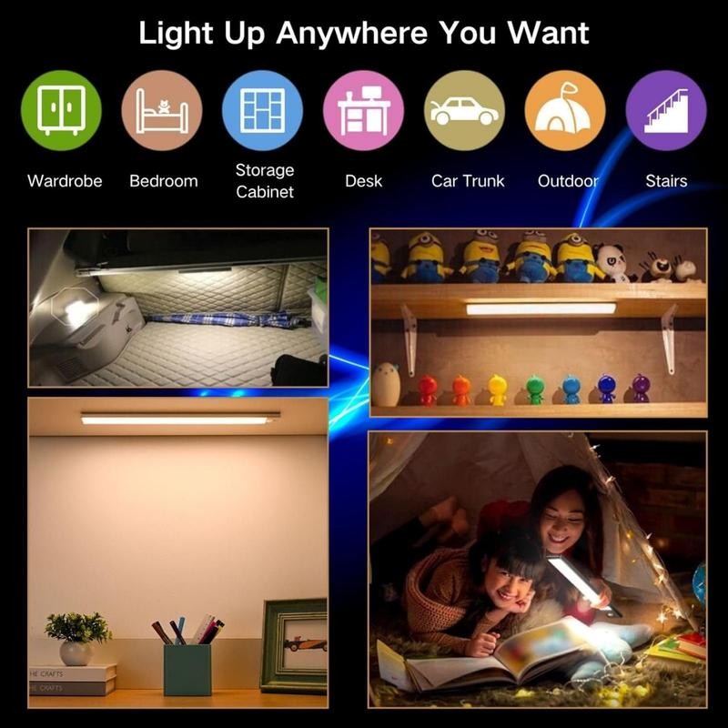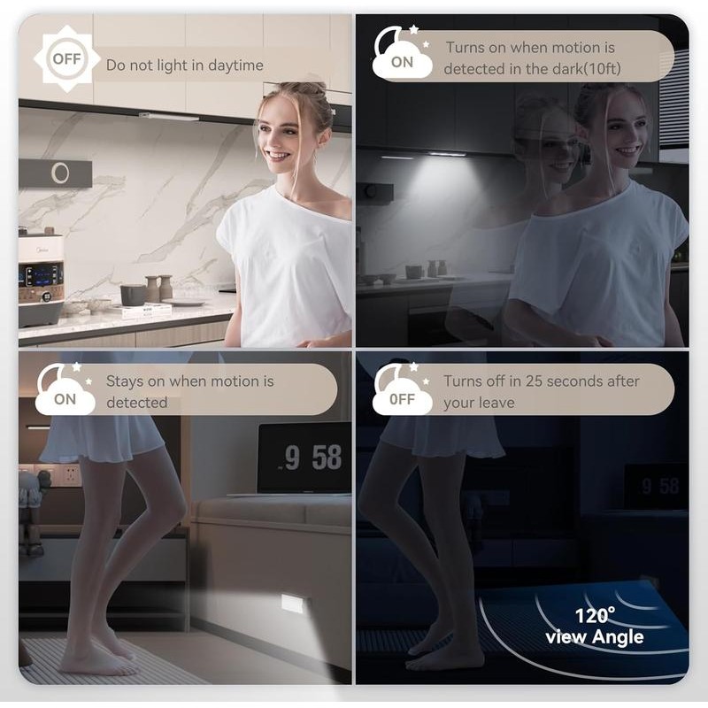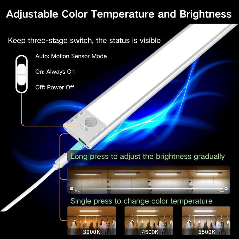 "16" Under Cabinet Lighting - 1/2/4 Pack USB Rechargeable LED Closet Lights with Motion Sensor & Dimming, Stick-On Lights for Bedroom, Kitchen, Stair (16-Inch):_1p