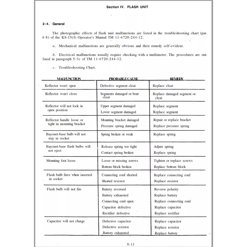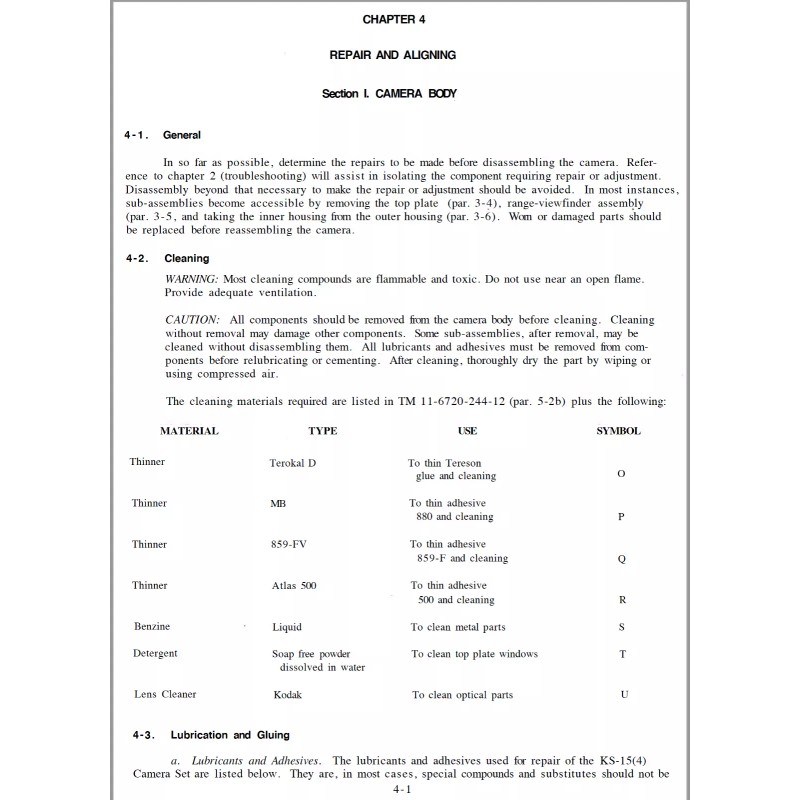CAMERA SET, STILL PICTURE KS-15(4). Repair Training Program