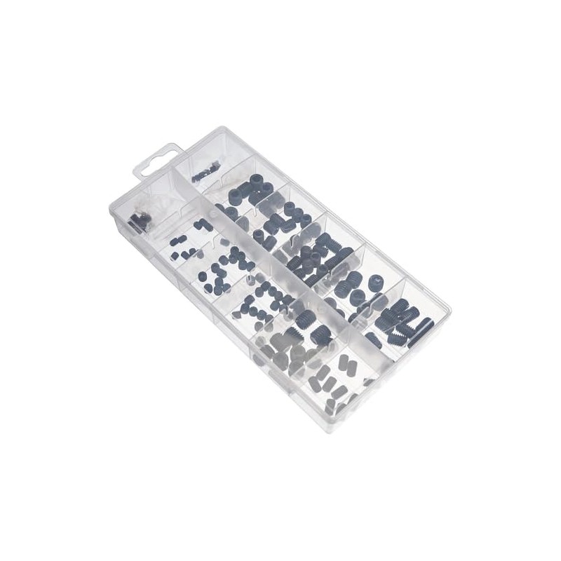 - Grub screws with standard thread: 15 grub screws M3 x 5 mm | 15 grub screws M4 x 5 mm | 20 grub screws M6 x 6 mm | 10 grub screws M6 x 10 mm | 20 grub screws M8 x 10 mm | 10 grub screws M5 x 6 mm | 10 grub screws M8 x 12 mm | 10 grub screws M10 x 10 mm | 10 grub screws M10 x 12 mm