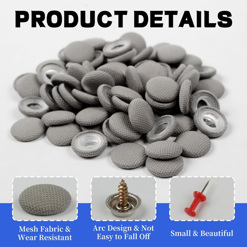 - High-quality materials: the headliner repair set is made of high-quality materials, the grey buttons are made of mesh fabric, moisture-proof and wear-resistant. The car roof liner rivets holder is made of a high-strength alloy with excellent hardness and toughness as well as high durability.