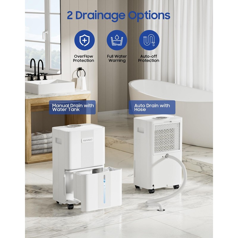 - EASY DRAINAGE ACCESS: The Water Tank Of This Bathroom Dehumidifier Can Be Taken Out For Drainage When It Gets Full. The Alternative Method Is To Use The Accessory Dehumidifier Hose For Continuous Drainage. Simply Connect The Continuous Drainage Hole To The Floor Drain Or A Collecting Vessel With The Hose, Saving More Time And From Frequent Emptying.