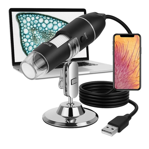1600x USB Digital Microscope with Adjustable LED Light - Compatible with Windows and Mac - Camera with Photo and Video, for Students, Lab, Electronics, Botany and More