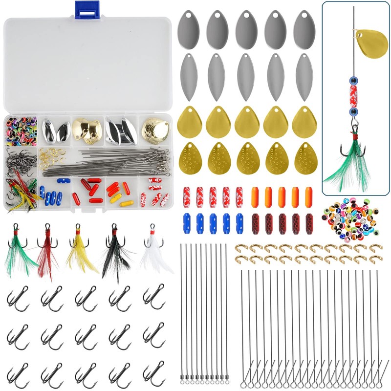 - 【SPINNER MAKING KIT】Include 10pcs Colorado Blade, 5pcs Willow Blade, 5pcs French Blade, 20pcs clevise, 30pcs shaft, 20pcs lure bodies, 50pcs bead, 5pcs teaser hook, 15pcs treble hook, can be made into at least 20pcs spinners. All assortments in one durable plastic box.