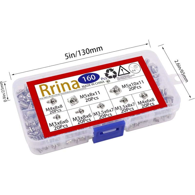 160Pcs M3 M3.5 M4 M5 Terminal Block Screws Assortment Kit with Square Washers, N