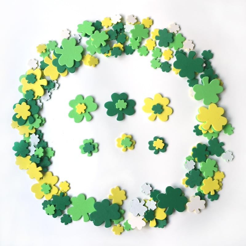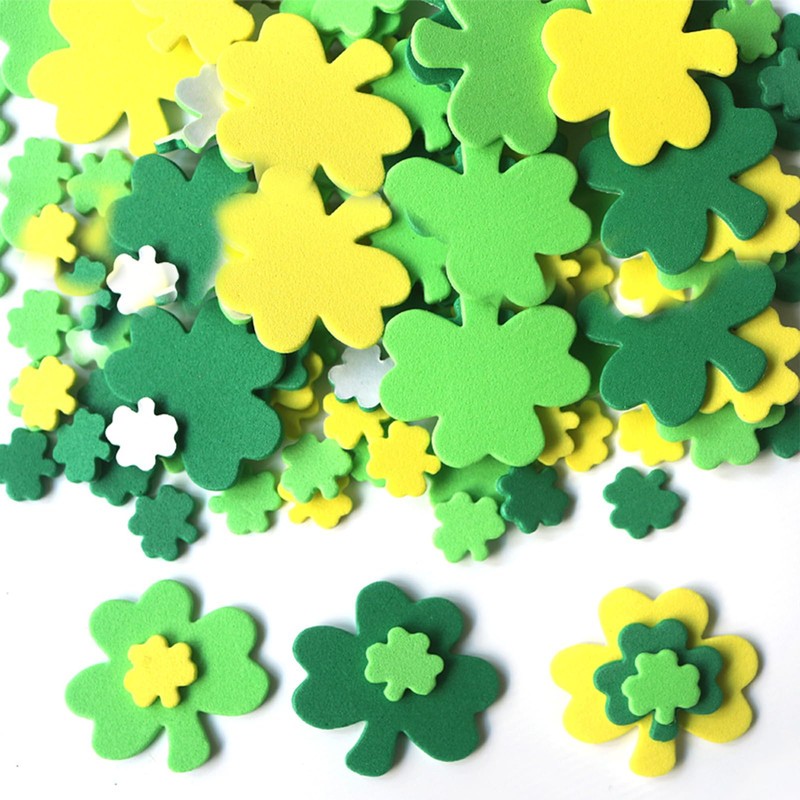 160Pcs St. Patrick's Day Shamrock Foam Stickers Self Adhesive Irish Clover Foam Decals for Crafts Decor DIY Greeting Cards Home Decoration