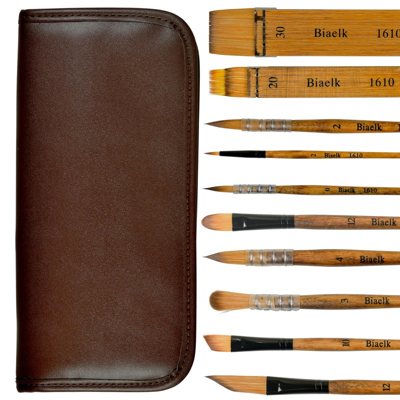 1610 Professional Watercolor Paint Brushes,Biaelk 10PCS Variety Brushes for Beginners and Professionals Including Pointed Rounds, Flats, Dagger, for Watercolors,Acrylics,Inks,Gouache,Oil and Tempera