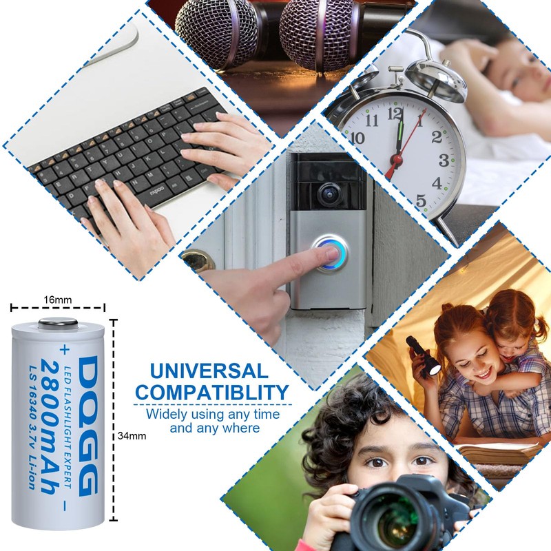 - 【Wide Compatibility】16340 rechargeable battery is compatible with versatile devices, such as headlamps, flashlights, doorbells,cameras, mini fans,toys and other electronic devices.Helps you quickly wake up your devices at any time