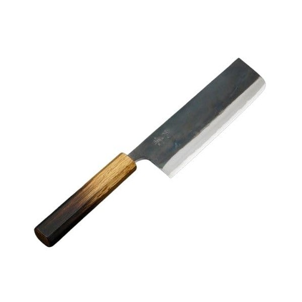 元兼 菜切り包丁 165mm 両刃 青紙スーパー 割込み 黒打ち仕上げ 焼き漆柄 土佐打ち刃物