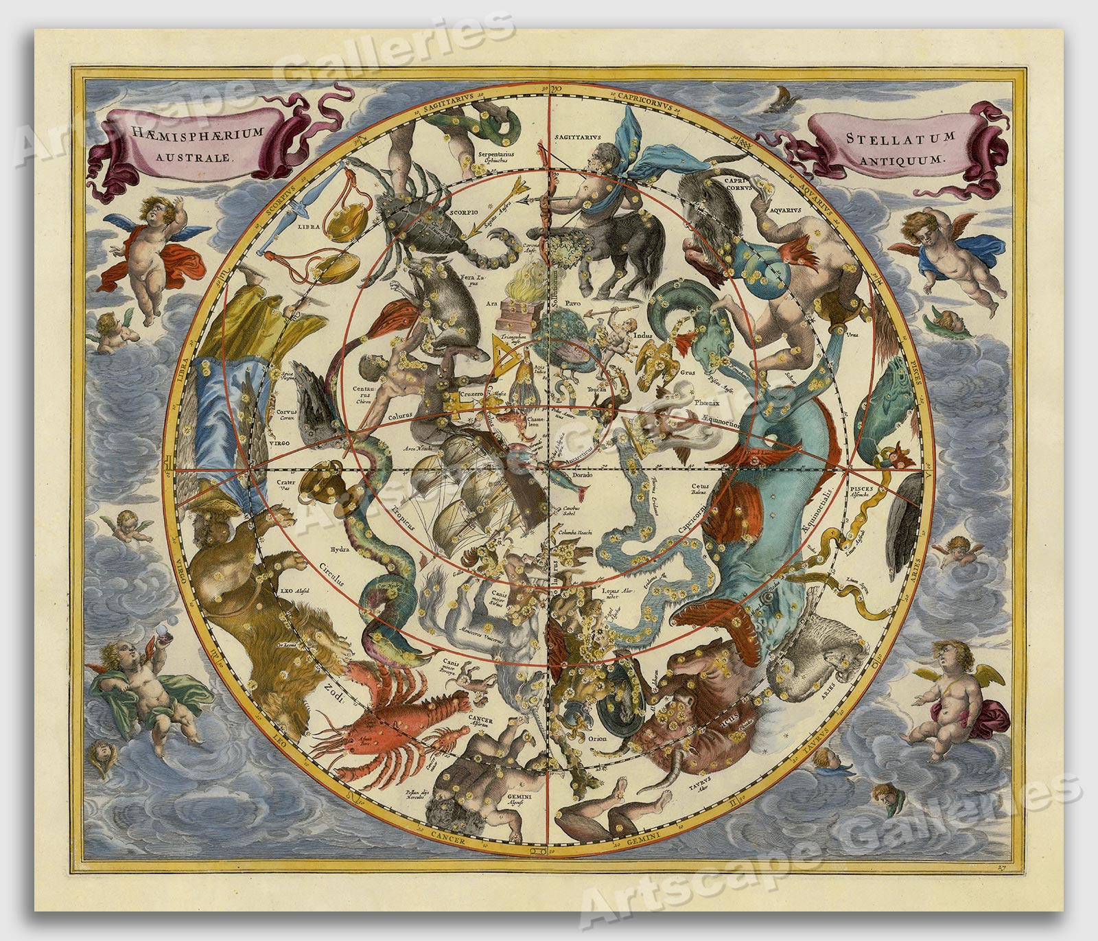 1660 The Southern Stellar Hemisphere - Plate 27 of Harmonia Macrocosmica - 20x24