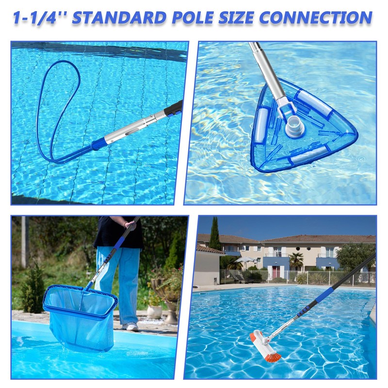 - Pool Pole-Universal Fit: The SKGPOLE swimming pool pole features a standardized 1-1/4 inch diameter connection port, which is a universal size required for installing standard size swimming pool accessories. This ensures compatibility with a wide range of pool maintenance accessories, including pool cleaning net, skimmer, brush, rake, vacuum head, hammerhead cleaner, etc.