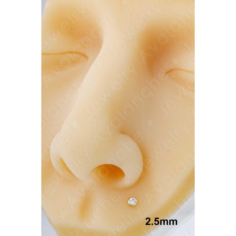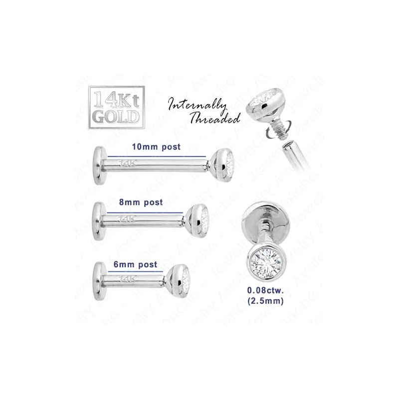 16G 14K White Gold Bezel Set 2.5mm (0.08ct) Diamond Labret Monroe Stud 6mm Post Flat Disk Bottom Lip Ring Tragus Stud Internally Threaded 14KLBRT-BZ25WD6WG