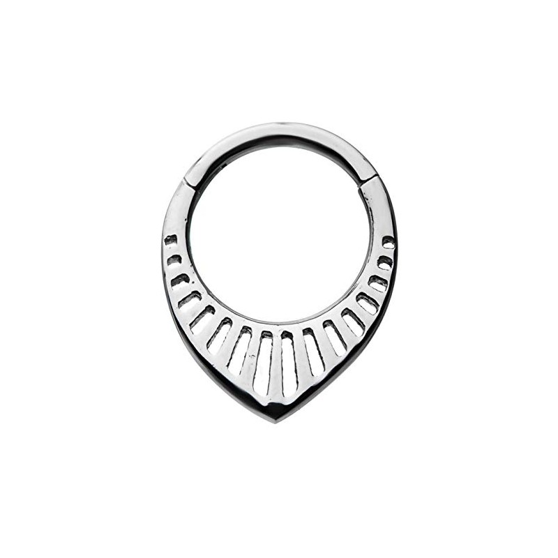 16G Rounded Teardrop Cut-Out Stainless Steel Hinged Segment Ring for Septum, Lip, Eyebrow, and Ear Piercings, Stainless Steel