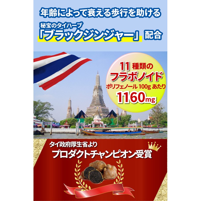 - ✅【ブラックジンジャーって?】リアルメイトのプロテオグリカンのこだわりポイントは特にこのブラックジンジャー!年齢によって衰える歩行能力を助ける「ブラックジンジャー」が配合されています。11種類のフラボノイド、ポリフェノール100gあたり1160mgが含まれています。タイ王国では伝統的に、関節に不安があるときは、ブラックジンジャーを煎じて食してきました。ブラックジンジャーは、タイ政府厚生省より安全で健康に良いものとして「プロダクトチャンピオン」を受賞しています。タイ政府からのお墨付きを与えられた有用植物です。