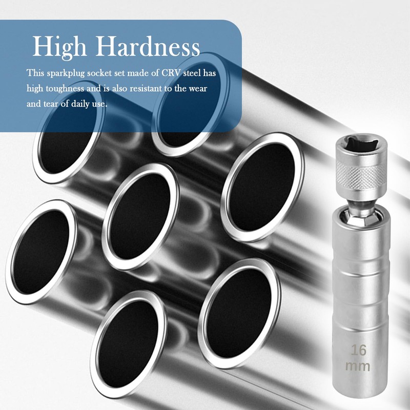 - High Hardness: This sparkplug socket set made of CRV steel has high toughness and is also resistant to the wear and tear of daily use. The socket remains in good working order even when the sparkplug is removed in harsh interior conditions