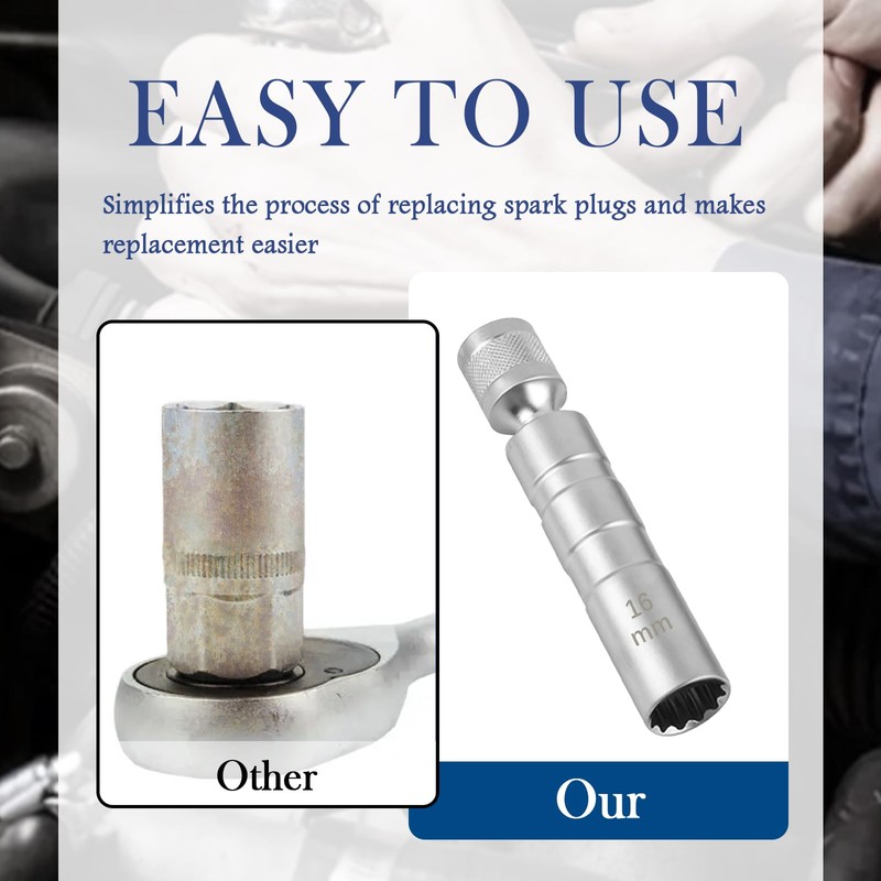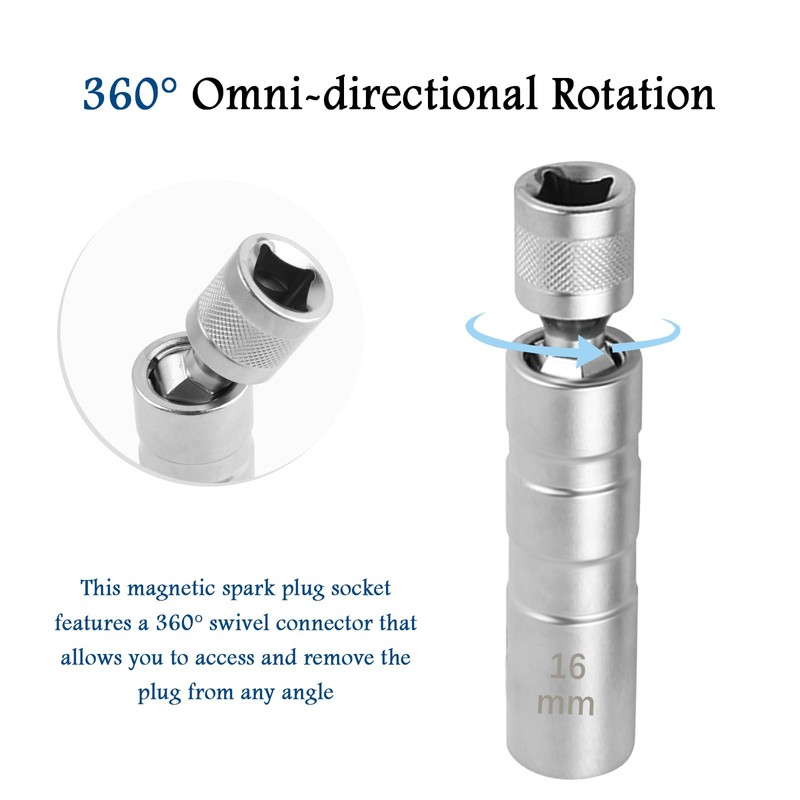 Spark Plug Removal: Spark plug socket is an important tool for installing and removing spark plugs in automobile engines, the built-in magnetic ring and helps you to attach and fix the spark plugs, the 360-degree swivel connector is especially suitable for those hard-to-reach spark plug locations