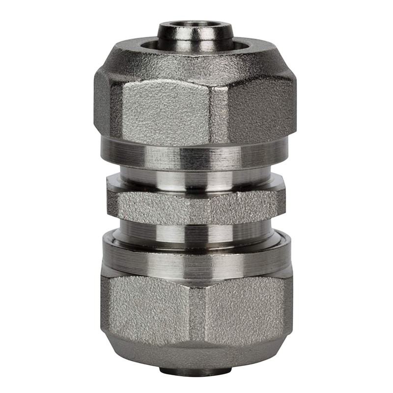 Nickel plated compression coupling connector with 16mm x 16mm euroconns