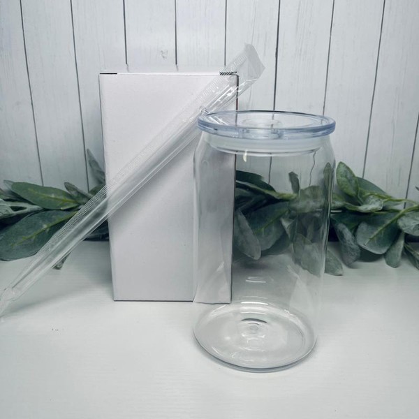 This is a blank, 16oz Plastic Can that comes with a clear plastic lid, plastic straw and individual box! It’s easy to them resell as a whole product with the included box!
