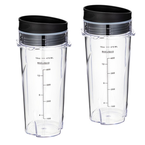 - 2 Pack 16oz QB3000SS, QB3001SS Cups for Ninja blender, has the measurement lines on the side and come with lid.